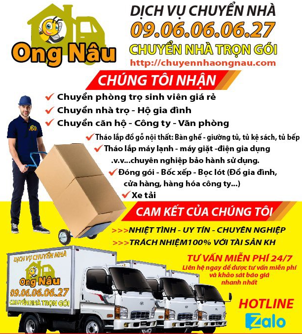 Khách hàng có nhu cầu sử dụng dịch vụ chuyển nhà trọn gói Ong Nâu hãy liên hệ ngay với chúng tôi. Ong Nâu tin rằng với kinh nghiệm, sự chuyên nghiệp của chúng tôi sẽ giúp quý khách hài lòng. Mọi thông tin tư vấn xin liên hệ theo: